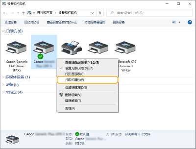 右键单击本机的打印机图标,然后单击 [打印机属性]。