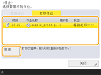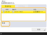 (停止)将暂停当前进行的发送/打印作业并显示<发送作业>/<打印作业>。