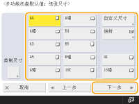 如果总是使用与多功能托盘相同的纸张尺寸和类型,建议固定多功能托盘的纸张尺寸和类型。这非常方便,因为可以节省每次使用特定纸张时进行设置的时间和精力。