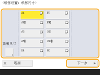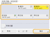<纸张设置>可显示<纸张设置>屏幕。