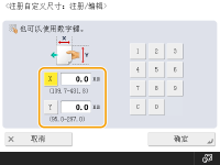 最多可以注册4个常用任意尺寸纸张。此处注册的纸张尺寸将显示在纸盒和多功能托盘的纸张尺寸选择屏幕上(