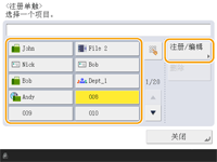 在单触按钮中注册的接收方可以合并为一个群组并注册为一个接收方。有关详细信息,请参阅 在单触按钮中注册一个群组。 要更改或删除单触按钮中注册的接收方信息,请参阅 编辑单触按钮中的注册接收方。 存储于单触按钮中的接收方也会显示在“本地地址簿”中。 |