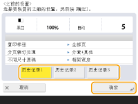 可以恢复之前使用的复印设置。可以在复印前更改已恢复设置的详细信息。