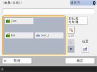 地址簿(本地)屏幕上的<注册/编辑>中的<注册新接收方>、<详细说明/编辑>以及<删除>可用于注册新接收方、检查详细说明以及编辑/删除接收方。 要使用远程地址簿,必须配置服务器机器设置 - 设置对外共享服务器机器上的远程地址簿。 |