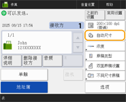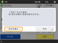 检查指定接收方的总数指定接收方的总数显示在屏幕右上方。您可以在发送前确认接收方的数量是否正确。 ![]() 使用发送方信息发送可以使用发送方的名称和传真号码发送。<发送端识别码> 检查所发送文档的状态在<状态确认>屏幕上,可以检查所发送文档的状态。利用此屏幕,可以在检查状态后重新发送或取消发送传真。 检查已发送和已接收文档的状态和日志 当<作业接受时显示通知>设为<是>时,<状态确认>屏幕将在收到发送作业之后显示的以下屏幕中显示。<作业接受时显示通知> ![]() 因接收方线路繁忙而发生发送错误时一段特定时间后,本机会自动重拨。可以更改本机重拨的次数和重拨间隔等设置。<自动重拨> 打印发送结果报告在“基本传真功能”屏幕上,按<选项> <发送结果报告>可以设置为自动打印列有发送结果的报告。要通过<选项>为各个作业设定此设置,必须在<发送结果报告>中选择<仅错误时>或<关闭>,然后将<允许从选项打印>设置为<打开>。 当已发送图像中的照片过暗或者彩色原稿背景中的浅色无法删除时如满足以下条件/设置,可能无法提高已发送图像的质量。 作业类型:传真(存储器发送),或者扫描和发送(传真/互联网传真) <选择色彩>:<黑白二值>(扫描和发送) <原稿类型>: <文本> <浓度> <背景浓度>: <自动><分辨率>:200 dpi x 400 dpi、300 dpi x 300 dpi*、400 dpi x 400 dpi 或 600 dpi x 600 dpi* *可对“扫描和发送”进行设置 <黑白扫描时速度/图像质量优先> 传真/互联网传真发送作业: <图像质量优先> (<黑白扫描时速度/图像质量优先>)当设置了多条电话线时您可以按<选项> <选择线路>来选择在发送传真时使用的电话线。有关指定传真线路设置的说明,请参阅传真线路设置。 |