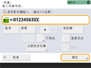 向国外发送传真依次输入国际接入号码、国家代码和传真号码。如果无法成功连接到国外接收方,按<暂停>在号码与下一个号码之间插入暂停。 使用子地址发送传真本机支持使用ITU-T*标准子地址。如果接收方的传真机支持使用ITU-T子地址,可以使用子地址和密码增强所发送文档的保密性。要使用子地址发送文档,输入传真号码,按<子地址>或<设置详细说明>,然后输入子地址和密码。 * 代表“国际电信联盟电信标准化部门”,它是对全球电信标准化提出建议的组织。 |