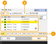 地址列表下拉列表可以显示特定的接收方组。使用个人认证管理登录到本机时,选择<个人地址列表>可以显示个人的“地址簿”。