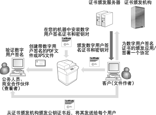 用户签名功能数字用户签名模式与认证应用程序相关联,将由数字用户签名证书生成的数字用户签名和本机内的密钥添加到文档中,从而使查看器能够验证签名文档的用户,以及在签名之后是否更改了文档。 |