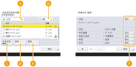 注册自定义纸张类型的设置时,务必更改其名称。不能更改本机中注册的默认纸张类型的设置。 |
