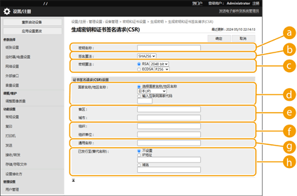 在本机上生成的证书没有CA签名,这可能会导致与某些通信对等方通信时出现错误。要请求带CA签名的证书,需要证书签名请求(CSR)数据。以管理员权限登录的用户可以生成CSR。