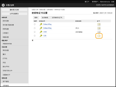 生成CSR的密钥会显示在密钥和证书列表屏幕上,但无法单独使用。要使用此密钥,需要注册稍后根据CSR颁发的证书。 将证书注册到密钥 |