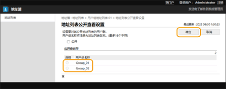 4 | 选择要在其中共享地址列表的组,然后单击[确定]。 ![]() |
