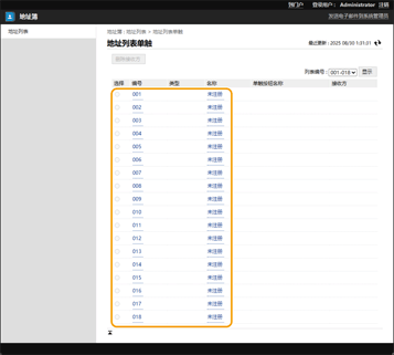 2 | 单击[未注册]或未注册的单触按钮编号。 如果是未注册的单触按钮,[名称]中会显示[未注册]。 要显示未在列表中显示的单触按钮,在[列表编号]中选择编号范围,然后单击[显示]。 ![]() |