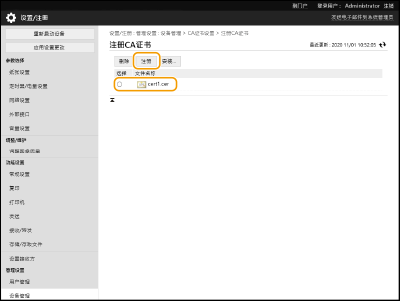选择要注册的CA证书,然后单击[注册]。