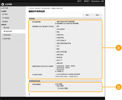 如果选择[选择需要认证的功能时显示登录屏幕],同样选择此功能来显示登录屏幕。