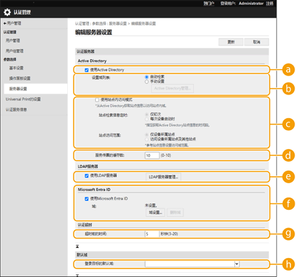![]() | 要将 Active Directory、Microsoft Entra ID 或 LDAP 服务器指定为额外的认证设备,必须注册用于认证的服务器的信息。必要时执行连接测试。 |