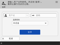 | | 使用本方法,用户将通过使用操作面板上显示的键盘输入用户名和密码来进行登录。无论使用的认证设备为何,本方法均可用。请注意,当与“简单登录”方法组合使用时,仅本地设备的注册用户才可登录本机。 |