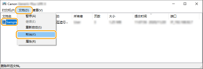 如果无法找到要取消的文档,则该文档已发送到本机。在这种情况下,无法在计算机上取消打印。