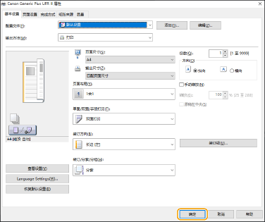 根据需要指定打印设置,然后单击[确定]。