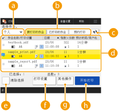 <要打印的作业>/<已打印的作业>/<预约打印>