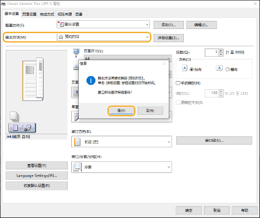 从[输出方法]中选择[预约打印],然后单击[是]。
