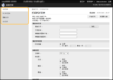 如果 PDF 文件设置了密码,请按 [指定PDF文件]  在 [文档密码] 中输入密码。打印链接到策略服务器的 PDF 文件时,选择 [指定PDF文件]  在 [策略服务器用户名] 中输入策略服务器用户名,并在 [策略服务器密码] 中输入策略服务器密码。