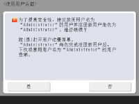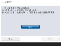 进行认证登录后,才可配置需要“管理员”权限的设置。 ![]() ![]() 按<登录>,选择具有管理员权限的用户并使用控制面板上的数字键输入密码。“管理员”的默认密码是“7654321”。再次按<登录>,然后按<确定>。 如果输入出厂默认密码,将显示提示更改密码的屏幕。还可以稍后更改密码。以管理员身份登录 可以跳过需要管理员权限的设置,并按<略过>继续下一步。在这种情况下,继续执行步骤10。 | |