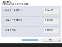可以打印网络用户列表、传真用户数据列表和调整值列表。 ![]() ![]() 按<开始打印>打印要打印的报告。 当打印完成或者未打印列表时,按<确定>。 | |