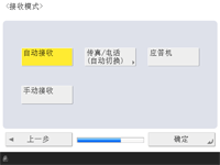 指定使用传真功能的必要设置。 ![]() 如果本机不支持传真功能,请继续执行步骤10。 如果显示选择屏幕,选择国家/地区并按<下一步>。 ![]() ![]() 输入传真号码,然后按<下一步>。 有关传真设置的信息,请参阅传真线路设置。 ![]() ![]() 按<设置>,输入用户名,然后按<下一步>。 ![]() ![]() 选择线条类型,然后按<下一步>。 ![]() ![]() 仅使用传真功能时,按<自动接收> ,或在连接电话机或听筒时,按<传真/电话(自动切换)>,然后按<确定>。 | |