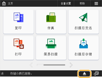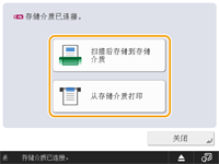 如果<连接存储介质时选择选项>设置为<打开>,则在插入存储介质时,会显示可用功能的快捷键。<连接存储介质时选择选项> ![]() 由于本机在睡眠模式时快捷键可能不会显示,因此应在机器从睡眠模式唤醒后插入存储介质。 |
