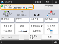 如果使用“部门识别码管理”设置了页数限制,则剩余页数会显示。有关设置“部门识别码管理”和页数限制的信息,请参阅 配置部门识别码管理设置。 |