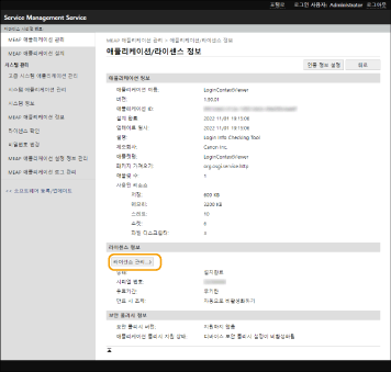 곧 만료될 예정인 라이선스가 있는 응용 프로그램이 있는 경우 조작부의 홈에 대해 <MEAP 카운터 확인>에서 라이선스의 만료 날짜를 확인할 수도 있습니다. |
