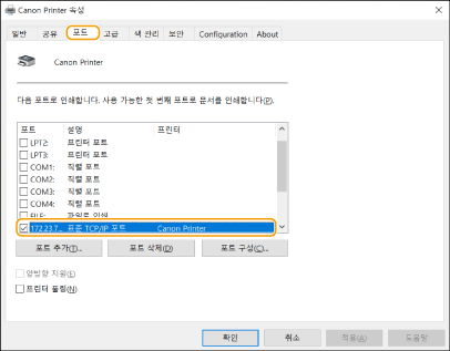 프린터에 올바른 포트가 선택되었는지 확인합니다.