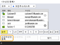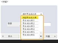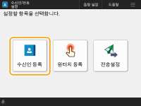 ![]() | 스캔한 문서를 전송할 때 사용할 수 있는 수신자의 팩스 번호나 이메일 주소를 주소록에 등록할 수 있습니다. 또한 I-팩스 수신인, 파일 서버 폴더 위치(IP 주소 및 경로) 및 Canon 복합기의 저장소(고급 박스)를 주소록에 수신인으로 등록할 수 있습니다. |
