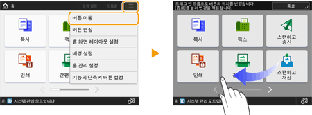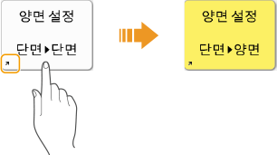 기능 및 설정이 다를지라도 화면에 표시되는 버튼의 작동 방법 및 항목 선택 절차는 같습니다. 이 단원에서는 화면에 자주 표시되는 버튼의 작동 방법과 항목 선택 방법을 설명합니다.