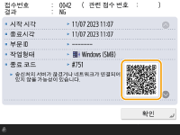 오류 로그의 세부 정보 창에 QR 코드가 표시되는 경우 스마트폰이나 태블릿과 같은 모바일 장치로 QR 코드를 스캔하면 해당 기기의 사용자 안내서 페이지에 액세스할 수 있으며, 이 페이지에서 오류 관리 방법을 확인할 수 있습니다.