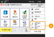 <기타 기능>에서 (복사, 팩스 및 스캔을 위한) 기본 특징 화면에 표시되는 설정 버튼을 변경할 수 있습니다. 기본 특징 화면에 자주 사용하는 설정 버튼을 두면 기능을 더 효율적으로 사용할 수 있습니다. 또한 개인 인증 관리에 로그인하여 각 사용자마다 사용자 정의된 다양한 기본 특징 화면을 표시할 수 있습니다.