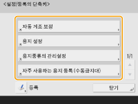 (설정/등록)을 누를 때 표시되는 모든 설정 항목에 대해 단축키를 만들 수 있습니다. 매우 깊은 수준에서 제공되는 설정 항목을 자주 사용하는 경우 해당 항목에 대한 단축키를 편리하게 사용하여 디스플레이를 빠르게 전환할 수 있습니다.