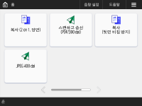 기능 단축 키 버튼을 각 기능 화면에 표시할 수 있습니다. 자주 사용되는 기능을 등록하면 <홈> 화면으로 돌아가지 않고 기능을 계속 사용할 수 있습니다.