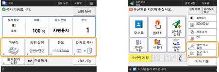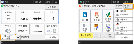 복사, 팩스, 스캔 설정의 동일한 조합을 자주 사용한다면 이러한 설정은 <즐겨찾기 설정>로 등록해두는 것이 편리합니다.