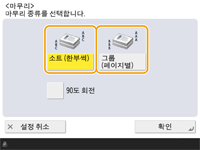 용지 유형에 따라, 마무리 기능을 사용하지 못할 수 있습니다. 하드웨어 사양 원고를 원고대에 배치하는 경우복사 기본 기능 화면에서 <기타 기능> <연속스캔>을 누르면 원고가 원고대에 배치되어 있어도 한 부씩 인쇄/그룹 기능을 사용할 수 있습니다.그룹 출력 중에 각 페이지 사이에 작업물 구분기 삽입<그룹 (페이지별)>을 선택한 경우 각 그룹 사이에 작업 구분 종이를 삽입할 수 있습니다. 자세한 내용은 <그룹간 구분종이>를 참조하십시오. <그룹간 구분종이> <저장파일 이용>에서 설정 구성 시PDF/XPS 파일을 인쇄할 때만 마무리 기능을 사용할 수 있습니다. |