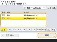 주소록에서 이메일 주소를 선택하고 <확인>을 누르십시오.