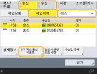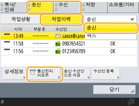1 | <송신> 또는 <수신> <작업이력>을 누릅니다. |