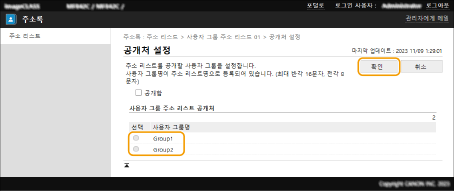 4 | 주소 목록을 공유할 그룹 선택 후 [확인]을 클릭합니다. ![]() |