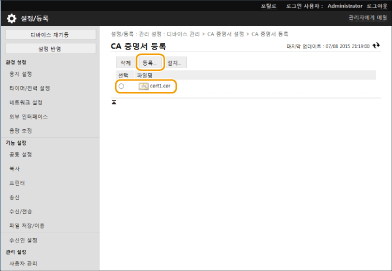 리모트 UI를 사용하여 키/인증서, CA 인증서 및 S/MIME 인증서를 컴퓨터에서 기기에 등록할 수 있습니다. 관리자를 지정하여 이 항목들을 등록합니다.