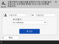 | | 조작 패널에 표시된 키보드로 사용자의 이름과 비밀번호를 입력하여 로그인하는 방법입니다. 이 방법은 사용 중인 인증 장치에 상관없이 사용이 가능합니다. 단, 이 방법을 사진 로그인 방법과 함께 사용할 경우, 로컬 장치에 등록된 사용자만 로그인이 가능합니다. |
