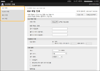 ![]() | 리모트 UI를 사용하면 컴퓨터나 네트워크에 저장된 파일을 프린터 드라이버를 사용하지 않고 기기에서 직접 인쇄할 수 있습니다. 인쇄하기 위해 컴퓨터에서 파일을 열지 않아도 됩니다. |