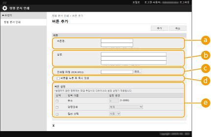 버튼 정보를 입력하고 필요한 설정을 구성합니다.