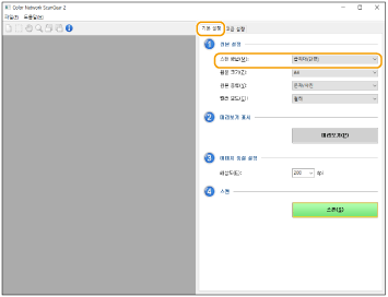 스캔할 색상, 해상도와 원고 크기를 지정할 수 있습니다. [고급 설정] 탭을 클릭하면 원고 방향과 같은 자세한 설정을 수행할 수 있습니다. 자세한 정보는 Color Network ScanGear 2의 도움말을 참조하십시오.