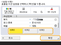 스캔 기본 기능 화면에서 <설정이력>을 누르십시오. 스캔 화면 개요